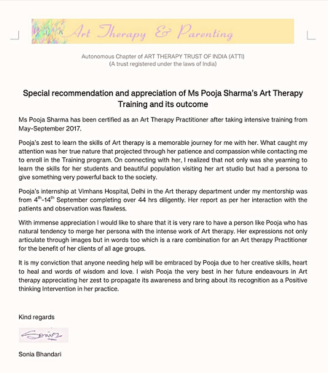 I am a seasoned Art Therapy Practitioner with a rich background in the field, backed by over 25 years of diverse creative work. My foundational training includes a certification from VIMHANS Hospital in New Delhi, one of the most prestigious institutions focused on mental health and neurosciences. Alongside Art Therapy Practitioner, I am also a trained practitioner of Neuro-Linguistic Programming (NLP), holding a globally recognized certification from ABNLP. This dual expertise enables me to offer a holistic approach to mental wellness and personal development.